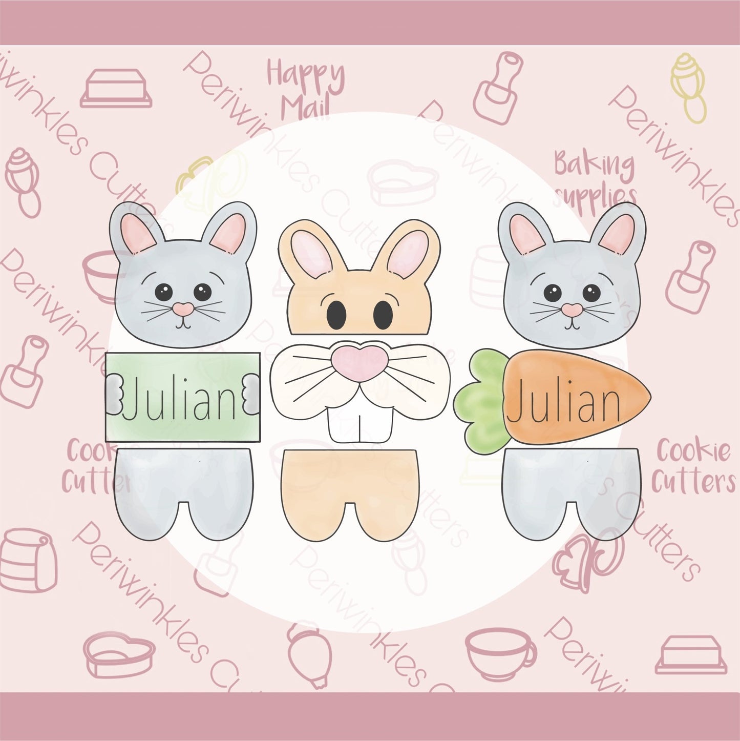 Easter Bunny 3 Pieces Cookie Cutter Set