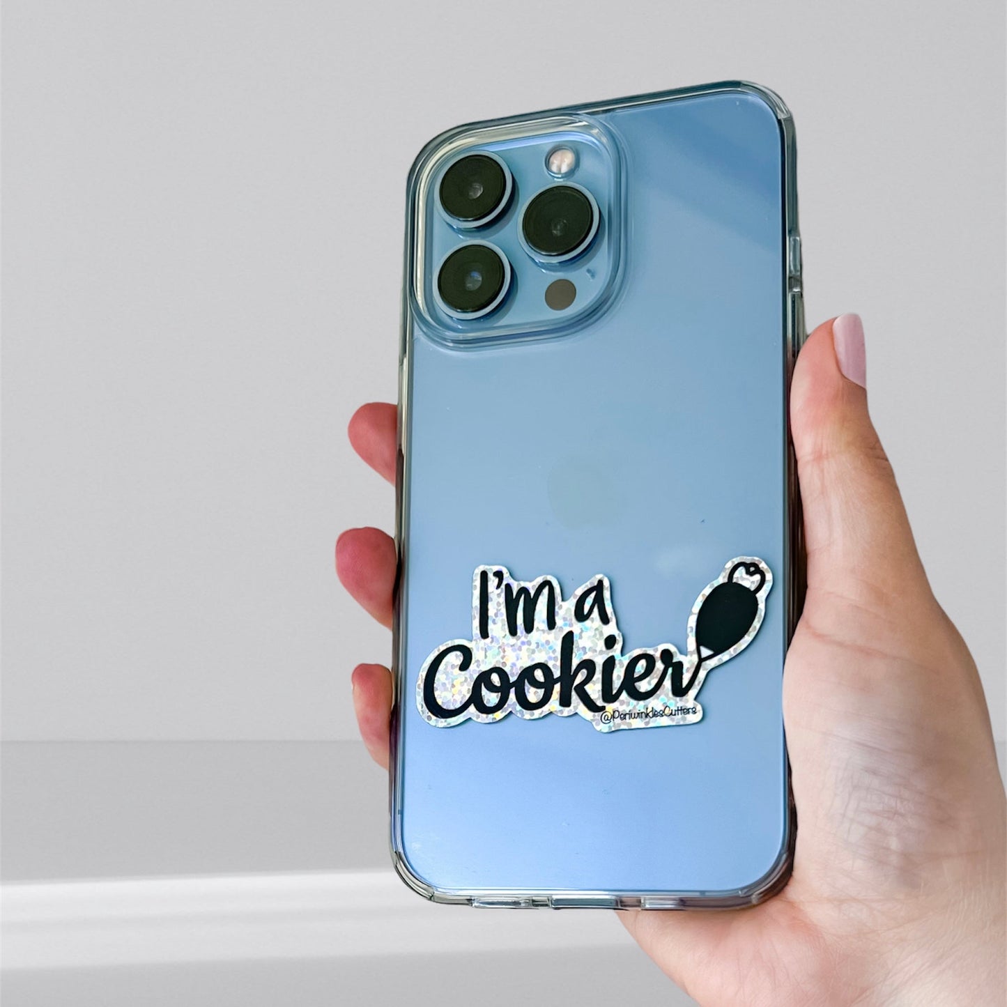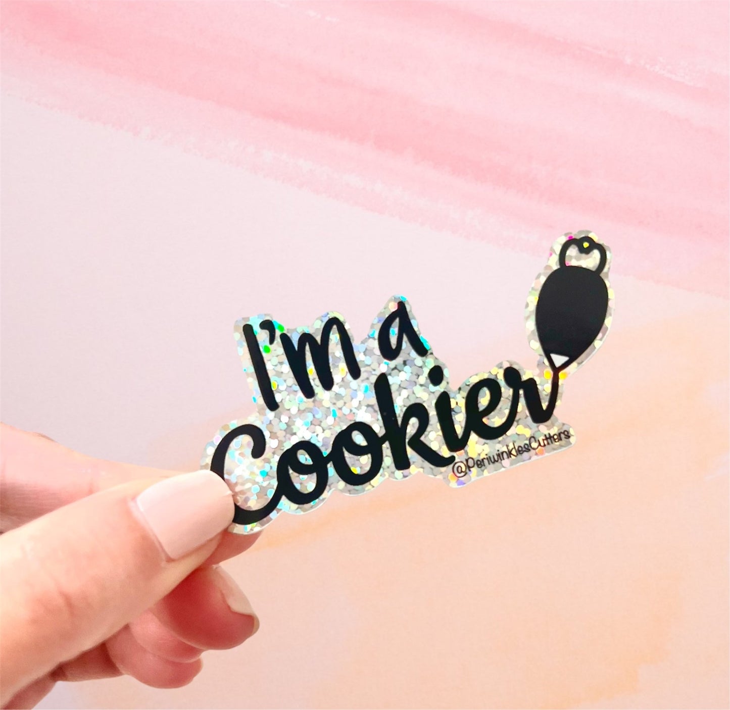 I'm a Cookier Glitter Holographic Kiss-Cut sticker size is about 3" wide.