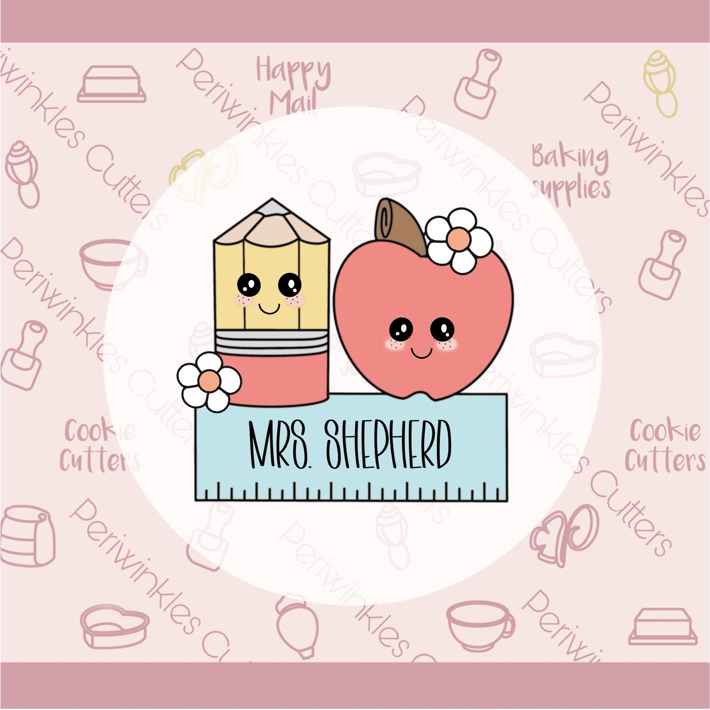 Pencil Apple Ruler Daisies Plaque Cookie Cutter