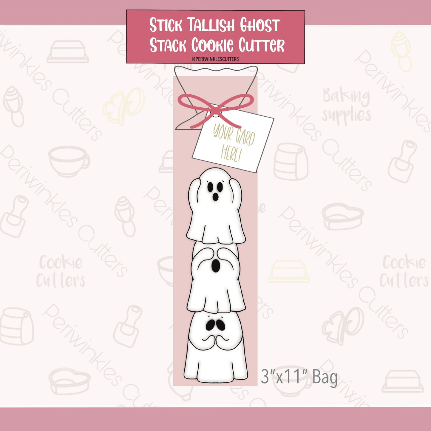Stick Tallish Ghost Stack Cookie Cutter measurement will be based on the height of this shape.